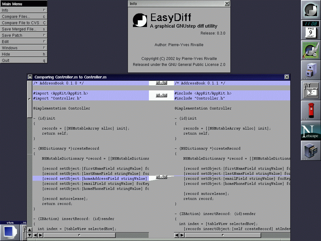 Jeder kennt das diff Kommando, um Unterschiede zwischen 2 Dateien zu finden. EasyDiff ist die graphische Version des Kommandos.