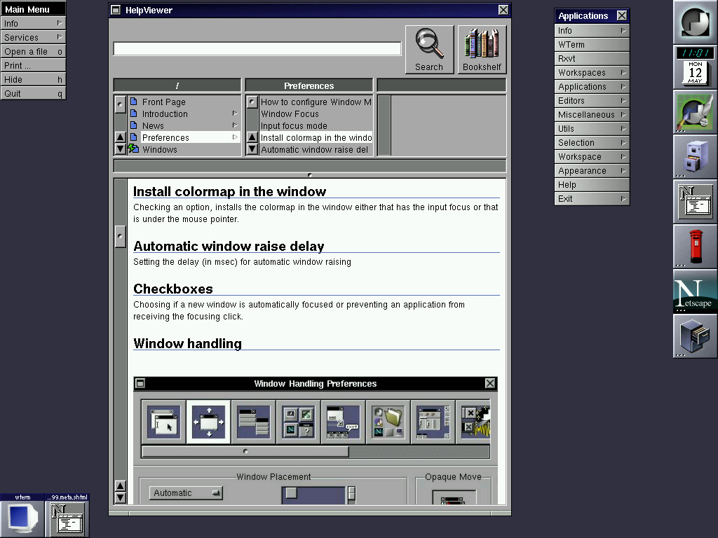 Hier ist ein Bildschirmfoto der Window Maker Tour, die man über das Anwenungsmenü aufrufen kann: