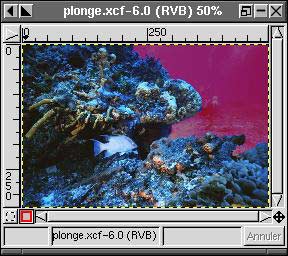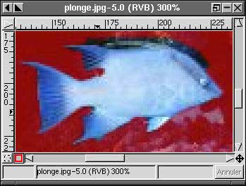 Vul de afbeelding (met het fill gereedschap, na eerst een goede "voorgrond kleur" gekozen te hebben door erop te dubbel klikken), en maak een selectie in de linker bovenhoek van de afbeelding met het rechthoekig gereedschap.