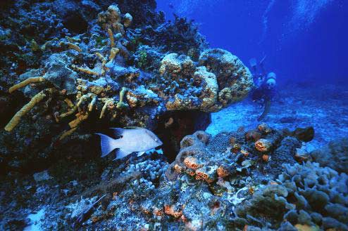 de voorgrond in het algemeen en de vis zelf in het bijzonder.