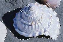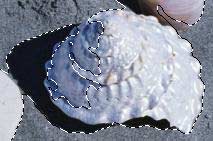 Для того чтобы выделить раковину (которой мы хотим изменить цвет), мы можем использовать выделение песка (записаное в канале). Его надо активировать и произвести инверсию. После выполнения этих действий мы получим выделенными все раковины. Чтобы выделить только одну, воспользуемся "лассо" с нажатой клавишей "ctrl" и исключим из выделения все ненужное.