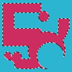 На нашем изображении теперь два цвета. Когда Вы выберете один из них с помощью "волшебной палочки", будет выделена вся область изображения заполненая этим цветом. Если Вы нажмёте "ctrl+i", выделение инвертируется; Вы можете это проверить нажав "ctrl+k" (удаление)...