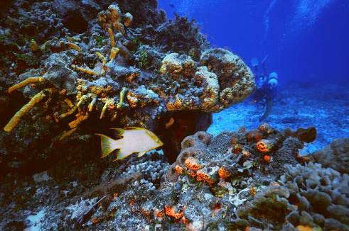 На этом изображении преобладает синий/голубой цвет. Картинку можно улучшить подправив две зоны: сначала передний фон, а затем рыбку, которая является частью переднего фона.