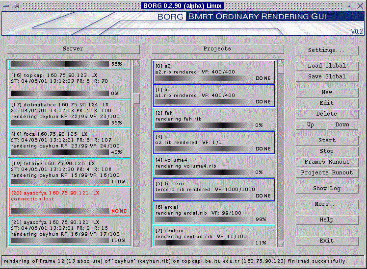 BORG kısaca Java ile yazılmış ağ üzerinden BMRT kullanarak görüntüleştirme yapabilen ve oluşan karelerin bir yerde toplanmasını sağlayan bir görüntüleştirme arayüzüdür.