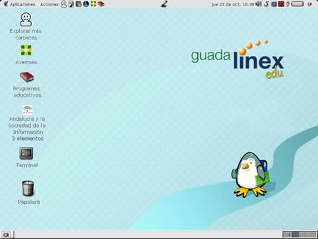 Una vez hayamos facilitado nuestros datos al sistema, éste continuará su proceso de arranque, hasta finalizar con el mismo en el entorno de ventanas Gnome, característico de GUADALINEXEDU.