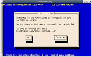 A continuación debemos abrir la aplicación para configurar la tarjeta de sonido (sndconfig) (acciones >> Configuración >> Configuración de la tarjeta de sonido). Aparecerá la ventana siguiente…