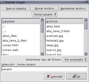 Una nueva ventana aparecerá, y en ella decidiremos el sitio y el formato en el que queremos guardar la imagen obtenida. Sólo tendremos que escribir el nombre que queremos dar al fichero y seleccionar el tipo de fichero.