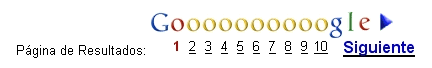 6. Como ves, Google te ofrece los resultados por tandas, de diez en diez. Al principio y al final de cada página aparece un índice con las tandas. Ve a la segunda tanda de resultados haciendo click sobre el 2. Visita algunas páginas.